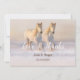 Um Cartões de agradecimentos romântico de casamento que apresenta sua foto favorita de um lado e uma pintura adorável de dois cavalos brancos correndo na neve do outro lado.
