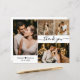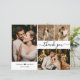 Impressionante, Moderno 4 Foto Colagem de Palavras de Mão Agradecemos barato de baixo orçamento fino. modelo de obrigado de na moda com quatro fotos na frente e uma foto na parte de trás. Com o texto "Obrigado" em uma letra de script tipografia escrita, escrita à mão, com haste ou a preto sobre fundo branco. ***POR FAVOR, NOTE! *** O PAPEL ORÇAMENTAL/FLYER É MAIS FINO DO PAPEL. *** ATUALIZE O PAPEL PARA UM PAPEL ESPESSURO. *** Cartão postal: https://www.zazzle.com/stylish_script_wedding_4_photo_collage_thank_you_postcard-256743531929513736 Cardstock Tradicional com Envelopes: https://www.zazzle.com/elegant_typography_script_wedding_4_photo_collage_thank_you_card-256676573582336140 Adicione seu nome e obrigado à sua mensagem. Se preferir escrever manualmente a sua nota, basta eliminar o texto de amostra para obter mais espaço. Se precisar de ajuda ou item correspondente, entre em contato com o designer! Escolha excelente para casamento com baixo orçamento.