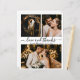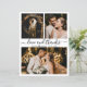 Orçamento, Moderno, Elegante, Colagem de Fotografias de Casamento à Mão Três Agradecimentos Personalizados Cartão Fino de barato Baixo Orçamento. Modelo de cartões de agradecimentos de casamento minimalista com três (3) fotos na frente e uma (1) foto no verso. Com o texto "Amor e obrigados" em uma letra de escrita caligráfica, escrita à mão, robusta, com traços em preto sobre fundo branco. Um pouco de coração entre os nomes. ***POR FAVOR, NOTE! *** O PAPEL ORÇAMENTAL/FLYER É MAIS FINO DO PAPEL. *** ATUALIZE O PAPEL PARA UM PAPEL MAIS ESPESSURO. *** Cartão postal: https://www.zazzle.com/wedding_photo_collage_love_and_thanks_thank_you_postcard-256313964226193537 Cardstock Tradicional com Envelopes: https://www.zazzle.com/love_and_thanks_script_wedding_photo_thank_you_card-256632561302382055 https://www.zazzle.com/elegant_typography_photo_collage_wedding_thank_you_card-256107482383952405 Personalize seu nome personalizado e sua mensagem de obrigado. Se preferir escrever manualmente a sua nota, basta eliminar o texto de amostra para obter mais espaço. Se precisar de ajuda ou item correspondente, entre em contato comigo!
