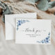 Um cartões de agradecimentos moderno com elegante roteiro preto, florais de aquarela e um obrigado que você envia aos seus convidados.