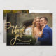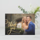 Elegante Chic Modern Boho Dourado Calliografia Script Wedding 2 Foto Cartões de agradecimentos. modelo obrigado de na moda com uma foto vertical de cheio na frente com o texto "Obrigado" em uma mensagem de tipografia timítica, escrita com letra swash tail na imagem e uma foto do lado reverso e uma mensagem de obrigado pré-feita. Placa de dois lados com 2 fotos. Facilmente personalizar seu nome e obrigado da mensagem. Se preferir escrever manualmente a sua nota, basta eliminar o texto de amostra para obter mais espaço. Se você precisar de ajuda ou item correspondente, entre em contato comigo!