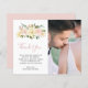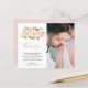 Cartões de agradecimentos romântico de casamento floral com flores aquáticas em cor rosa-claro, rosa poeirento, champanhe e marfim juntamente com pedaços de sotaque de ouro. Abaixo está sua mensagem personalizada e à direita está sua foto favorita. Estas cartas de agradecimento elegantes são perfeitas para um casamento de primavera ou verão.