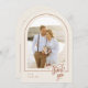 Um elegante e moderno cartões de agradecimentos de casamento em forma de arco neutro, que apresenta um texto de estilo manuscrito de tendências "obrigado você" e bordas elegantes ao redor das suas fotos. Personalize a modelo com suas iniciais, data do casamento, mensagem e fotos. Todas as cores de texto, elementos e fundo são editáveis para que você possa criar uma placa personalizada que corresponda perfeitamente à sua foto. © Kimbellish, LLC