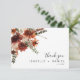 Este cartões de agradecimentos de casamento na moda apresenta aquarela terracotta e flores ruidosas escuras, folhas secas e galhos. É um convite perfeito para o casamento de boho e rusticidade de outono. Adicione sua foto.