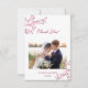 Diga obrigado aos seus entes queridos em estilo com nosso cartões de agradecimentos de casamento personalizado. Apresentando um belo galho cor-de-rosa com flores de cereja e uma foto de casamento personalizada na frente, ele mostra uma atmosfera bela e romântica. Personalize-o ainda mais com uma mensagem sincera nas costas. Torne o dia ainda mais memorável com nosso kit de casamento de cheio, com o mesmo design de cereja delicado. Celebre seu amor na elegante e eterno beleza da flor de cereja.