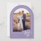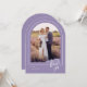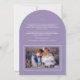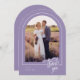 Um elegante e moderno cartões de agradecimentos de casamento em forma de arco que apresenta um texto de estilo "obrigado você", escrito à mão, e bordas elegantes ao redor das suas fotos. Personalize a modelo com suas iniciais, data do casamento, mensagem e fotos. Mostrada em uma paleta branca e lavanda, mas todas as cores de texto, elementos e fundo são editáveis, para que você possa criar uma placa personalizada que corresponda perfeitamente à sua foto. © Kimbellish, LLC