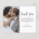 Expresse sua sincera gratidão em estilo de eterno com este Cartões de agradecimentos de Casamento de Fotos do Elegante Script. Apresentando caligrafia refinada, um layout de foto de cheio e elementos minimalistas de design, este cartão é a maneira perfeita de obrigado de seus convidados enquanto mostra um momento apreciado de seu grande dia. Ideal para temas de casamento modernos, românticos ou clássicos, é totalmente personalizável com sua mensagem e foto.