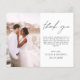 Expresse sua sincera gratidão em estilo de eterno com este Cartões de agradecimentos de Casamento de Fotos do Elegante Script. Apresentando caligrafia refinada, um layout de foto de cheio e elementos minimalistas de design, este cartão é a maneira perfeita de obrigado de seus convidados enquanto mostra um momento apreciado de seu grande dia. Ideal para temas de casamento modernos, românticos ou clássicos, é totalmente personalizável com sua mensagem e foto.