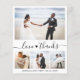 Orçamento, "Obrigados e amor" Letra o Barato de Colagem de Fotos de Coração Elegante, Minimalista e Coração de Espetáculos, Obrigado Cartão Fino em Preto e Branco. Simples modelo de cartão de casamento bonitinho com quatro (4) fotos na frente e uma foto no verso. Com o texto "Amor e obrigados" numa bonito letra escrita com letras maiúsculas e minúsculas na cauda do swash. Adicione o seu nome e obrigado à sua mensagem.