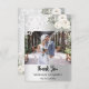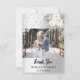Um cartões de agradecimentos moderno e elegante sem fotos. Um fundo de olhar mal prateado. Decorado com rosas brancas, flores florais e rendas brancas Na frente do texto: Obrigado De Volta: Modelo pela sua nota de agradecimento e nomes.