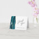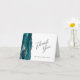 A borda esquerda deste elegante obrigado de casamento plano... você tem um design azul-lacrimogêneo com brilho dourado. O texto está em um script dourado e sans serif fonts em um fundo branco.