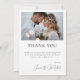 Este belo obrigado de casamento... Você mostra duas fotos da noiva e do noivo. A mensagem no verso diz: "Muito obrigado por celebrar conosco no nosso dia do casamento! Sua presença significou o mundo para nós." Para personalizar o cartão, basta clicar em 'Personalizar este Design' e inserir sua mensagem personalizada. Seus hóspedes vão gostar de receber uma dessas maravilhosas pegadas depois do casamento.