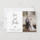 Cartões de agradecimentos de Casamento Cardíaco de Amor Minimalista Moderno e minimalista com cartões de agradecimentos de casamento apresentando uma imagem de cabeçalho da caligrafia moderna, a foto do casal e a imagem de pequenos corações. A parte traseira da placa também apresenta uma foto do casal e uma mensagem para amigos e familiares.