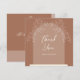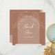 Maneira única, mas bela, de dar apreço aos amigos e entes queridos. Este cartões de agradecimentos de casamento tem um estilo de arco e apresenta um design floral. Na parte traseira da placa estão monogramas junto com espaço para adicionar sua mensagem especial. Mostrado em marrom-mocha (frente e trás). Apenas mude o texto para atender às suas necessidades. Use a modelo para personalizar.