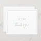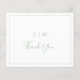 Simples cartões de agradecimentos de casamento orçamentário com um design moderno, mas elegante, com seu monograma de duas letras junto com "obrigado você" em uma letra manuscrita cercada por uma fina borda. O verso tem sua mensagem personalizada. Todos os elementos de design estão em verde de sábio e podem ser alterados para qualquer cor desejada na ferramenta de edição de design. Um design chic e na moda que é excelente para um casal minimalista.