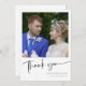 Elevem a sua obrigado de casamento com o nosso belo Cartões de agradecimentos de Casamento Elegante Personalizado. Este cartão maravilhoso apresenta um belo e manuscrito "Obrigado" em um roteiro elegante, acrescentando um toque de sofisticação à sua mensagem sincera. A frente do cartão mostra uma foto personalizada, ao estilo polaroide, capturando perfeitamente a alegria e o amor do seu dia especial. Personalize ainda mais o cartão adicionando seus nomes, data especial e local do casamento, fazer-o como um guardião valioso que conta sua única história de amor. A parte de trás do cartão apresenta uma mensagem preta e personalizada de gratidão, lindamente mesclada escrita e tipografia moderna contra um fundo branco primitivo. Este design ponderado captura sua apreciação com elegância e charme, fazer a forma perfeita de expressar gratidão a convidados queridos ou entes queridos. Ordene nosso Cartões de agradecimentos de Casamento Elegante Personalizado e torne seu obrigado realmente inesquecível.