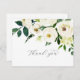 Este elegante cartões de agradecimentos floral branco é perfeito para um casamento clássico. A design da colheita moderna apresenta marfim lindamente romântico e rosa de cor-de-água creme e flores de pénia com folhas verdes escuras, verde-verde e botânica. Personalize a parte traseira do cartão com seus nomes e uma mensagem de obrigado. Como alternativa, deixe o vazio da seção modelo da mensagem do obrigado para escrever uma nota personalizada em cada cartão após a sua chegada. Essas cartas podem ser usadas para um casamento, chá de panela ou qualquer evento especial.
