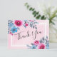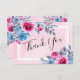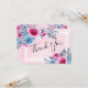 Cartões de agradecimentos de casamento romântico e moderno, com design de cor d'água floral, sobre fundo de rosa claro.