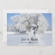 Um Cartões de agradecimentos romântico de casamento com sua própria foto favorita de um lado e uma pintura adorável de um casal com guarda-chuva em uma neve cobriu a terra maravilhosa de inverno do outro lado.