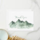 Este cartões de agradecimentos de casamento plano de montanha verde é perfeito para um casamento rústico. A design apresenta uma montanha verde pintada à mão de uma aquarela, inspirando um tema do campo. Personalize o dentro da placa com seus nomes e uma mensagem de obrigado. Ou deixe o vazio da seção de mensagens e escreva uma nota personalizada em cada cartão. Essas cartas podem ser usadas para um casamento, chá de fraldas, ou quando quiser dizer obrigados.