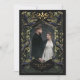 Design de casamento elegante, caprichoso e gótico é perfeito para uma celebração encantada de temas florestais ou para um caso gótico sangrento e escuro. Este design apresenta corvos colocados num quadro de espinhos-azuis-palha, bagas, verde e sotaques dourados. Correspondência de Itens em nosso compro para um tema completo de festa.
