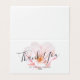 Um bonito cartões de agradecimentos de casamento com a frase "obrigado você" em letra preta, sobrepondo um rosa de cachorro-colorido cor-de-água rosa, e seus nomes e data de casamento em fontes modernas de sans serif. O cartão é vazio de dentro para a sua própria mensagem escrita à mão.