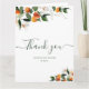 cartões de agradecimentos chá de fraldas com guião e laranjas de citrinos. O texto e as cores podem ser personalizados.