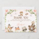Animais de Floresta Floral Chá de fraldas Cartões de agradecimentos De Pavimento Em Pavial, o cartões de agradecimentos de chá de fraldas feminino, com vários animais de floresta e alguns adoráveis arranjos florais cor-de-rosa. O cartões de agradecimentos de chá de fraldas desta menina é uma maneira fofa de obrigado para os convidados por terem vindo ao chá de fraldas temático da floresta da sua menina.