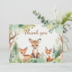 Mande uma nota sincera com este cartões de agradecimentos de chá de fraldas da floresta com uma raposa de bebê de cor aquosa, cercada de verde sobre um fundo pastel suave. Perfeito para um chá com temática florestal neutra em termos de gênero, este cartão deixa espaço dentro para a sua mensagem personalizada. Uma maneira doce de mostrar apreço aos seus convidados depois de uma celebração especial.