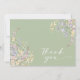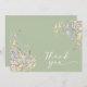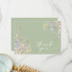 Mande uma nota de gratidão calorosa e elegante! Este belo cartões de agradecimentos plano apresenta um fundo verde de sábio tranquilo, fornecendo a canvas perfeita para os delicados polos de flor silvestre de aquarela que adornam os cantos. Os tons roxos, amarelos e cor-de-rosa pincelados das flores emprestam um charme suave e rústico. A mensagem sincera nas costas facilita mostrar seu apreço pelo amor, apoio e presentes pensativos de seus convidados.