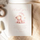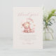 Este cartões de agradecimentos de chá de fraldas bonitinho apresenta um doce urso de aquarela em um vestido cor-de-rosa abaixo das palavras "obrigado você" em escrita rosa. Personalize o texto com a sua mensagem na fonte sans serif e na linha de assinatura no script em um plano de fundo bege. Ideal para o chá de fraldas de uma garota.