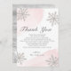 Este elegante cartões de agradecimentos de chá de fraldas de inverno apresenta uma rosa claro de fundo em aquarela com falso falso floco de neve prateada. O verso apresenta um fundo de neve gelada. Personalize-o para as suas necessidades. Você pode encontrar produtos correspondentes na minha loja.