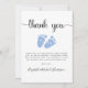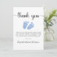 Cartões de agradecimentos bonito para o chá do seu bebê com "obrigado você!" num roteiro na moda com pestanas e uma aquarela azul de pés de bebês. Por baixo, você pode personalizar facilmente seu obrigado, enviar uma mensagem ou deixar o vazio para uma nota manuscrita.