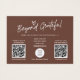 Este cartão-presente de código QR moderno da Tendy com script de caligrafia de na moda é uma escolha perfeita para mostrar sua gradação ao seu cliente. Apresenta 2 código QR, mídia social e informações de rede. Na parte traseira do cartão, você pode escrever mais mensagens para o seu cliente ou simplesmente escrever suas informações comerciais. Seu cliente amará este certificado de presente de código QR bonito e chic.