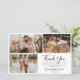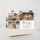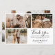Orçamento, Moderno, Minimalista, Elegante, (3) Cartões de agradecimentos De Casamento Com Três Colagem De Fotos. modelo de cartões de agradecimentos de casamento na moda com 3 fotos na frente e uma (1) foto no verso. Com o texto "Obrigado" em uma letra de script tipografia escrita escrita, escrita à mão, em preto, sobre fundo branco. Personalize o seu nome personalizado e a sua mensagem de obrigado. Um pouco de coração entre os nomes. Se precisar de ajuda ou item correspondente, entre em contato com o designer!