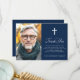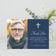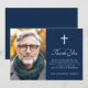 O cartões de agradecimentos de simpatia de envenenamento elegante com o modelo de foto e o seu obrigado personalizado. Cruz branca e elegante sobre fundo azul escuro ou cor personalizada. Você pode mudar todas as cores na ferramenta design.