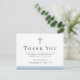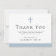 Elegante enlute o cartões de agradecimentos de simpatia com a cor personalizada Cristian, cruzado e borda. As cores padrão são azuis e brancas empoeiradas, mas a cor de fundo, a cor de borda, a cor cruzada, as fontes e as cores da fonte podem ser alteradas com a ferramenta design