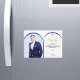 Um Cartões de agradecimentos de fotos magnéticas de confirmação. Adicionar uma foto de tamanho vertical. Um quadro fotográfico em forma de arco azul. Personalize e adicione um nome e detalhes.