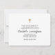 Este design moderno é composto por uma simples tipografia de serifa e escrita cursiva adornada com uma cruz de ouro falsa.