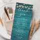 Adicione um toque pessoal e atencioso à sua celebração de casamento com este moderno e rústico cartões de agradecimentos de janto de casamento romântico. Concebido para ser colocado no lugar de cada convidado, esta elegante peça de papelaria de casamento ajuda-o a expressar gratidão e a criar uma atmosfera quente e acolhedora. Com o tema moderno minimalista elegante das luzes verdes de cordas de madeira azul-teta, é perfeito para melhorar seu janto de casamento, sua recepção ou ensaiar a decoração do janto. Personalize com seus nomes, data de casamento ou uma mensagem especial para torná-la realmente sua.