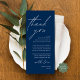 Este é o cartão editável moderno, em design de script minimalista, tema azul marinho, Configurações de agradecimento de Cartões. Compartilhe o amor e mostre seu apreço aos seus convidados, quando eles sentarem em seu assento e lerem esse obrigado encantador personalizado que você coloca com o cartão de ajuste. É uma maneira maravilhosa de acabar com a sua celebração especial de dia!