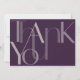 Mostre seu apreço sincero com este simples casamento de 7 x 5", graças a cartões com as palavras, "Obrigado", em letras grandes em tons de lavanda em um fundo roxo de berinjela. As costas das cartas apresentam um ponto para a sua foto favorita, pequeno coração junto com a mensagem "com amor do novo", uma caixa de mensagem opcional e um espaço reservado para os novos nomes.