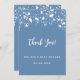 Um cartões de agradecimentos para um Chá de fraldas. Uma cor de fundo azul empoeirada. Decorado com estrelas brancas. Voltar: Personalize e adicione seu nome e nota de agradecimento.