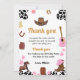 Cartões de agradecimentos para uma Festa de aniversário Ocidental selvagem de Cowgirl Ocidental. Este cartões de agradecimentos é ideal para uma comemoração de aniversário com tema de vaquinha para o seu filho! Clique em "Toque para personalizar mais" para ajustar a fonte, a cor do texto e o tamanho. Outros produtos semelhantes podem ser encontrados na Coleção de Partido Cowboy & Cowgirl. Faça o seu hoje!