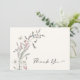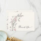 Elegante e na moda, este Cartões de agradecimentos de flor selvagem apresenta lindas cores d'água, rosa, púrpura, e flores silvestres pastéis azuis, e verde-salva com uma borboleta branca e giro, arranjada num adorável buquê de colheita, sobre fundo de marfim. A parte traseira inclui um belo buquê e texto correspondentes para personalizar ou deixá-lo vazio para excluir.