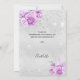 Um cartões de agradecimentos para um aniversário de 50 anos (ou qualquer idade). Uma cor falsa de fundo com aspecto prateado. Decorado com flores cor-de-rosa, violetas e poeira brilhante fraca. À frente, um grande texto escrito à mão e o texto: Obrigado, seu texto, título e uma data. Voltar: personalize e adicione seu nome e nota de agradecimento.