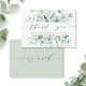 Este cartões de agradecimentos apresenta cor d'água, eucalipto, verde botânico e folhas azuis-claras com script "muito" no verso. Perfeito para casamentos, aniversários, graduações e outros eventos.
