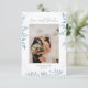 Este moderno cartões de agradecimentos de casamento plano apresenta uma elegante borda geométrica, folhas de eucalipto azuis empoeiradas e letra romântica. Substitua a foto na frente por uma do seu casamento. Adicione sua própria mensagem ou exclua o texto para que você possa escrever sua mensagem manualmente no verso. Veja outros itens na coleção "Blue Eucalyptus".