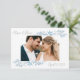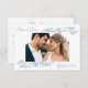Este moderno cartões de agradecimentos de casamento plano apresenta folhas de eucalipto azuis empoeiradas e letra de roteiro romântica. Substitua a foto na frente por uma do seu casamento. Adicione sua própria mensagem ou exclua o texto para que você possa escrever sua mensagem manualmente no verso. Veja outros itens na coleção "Blue Eucalyptus".