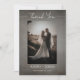 Capture seu dia especial com nosso cartões de agradecimentos de casamento personalizado, com fotos frontais e traseiras do casal casado com um filtro de nevoeiro fotográfico para um efeito sonhador. O fundo angustiado do enfumaçado escuro e a tipografia moderna oferecem um olhar chique e contemporâneo. Personalize a frente com seus nomes e data de casamento, e adicione uma frase sincera "até que a morte nos separe" nas costas. Este cartões de agradecimentos elegante é perfeito para expressar gratidão aos seus convidados e criar uma lembrança duradoura de sua celebração. Certifique-se de verificar o resto desta coleção de design para atender a todas as suas necessidades de papel de carta de casamento.